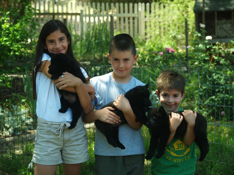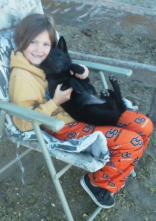 Our Schipperkes are AKC registered, your assurance of the highest standard in pedigreed dogs. Ours are guaranteed free of genetic defects. They are raised in our home and socialized from an early age to people and other animals. They live with us, being part of our daily lives. They get plenty of exercise on a daily basis, working stock on the ranch or accompanying us on a horseback ride. We rely on them for predator alerts and help with livestock. They have important jobs on the ranch.